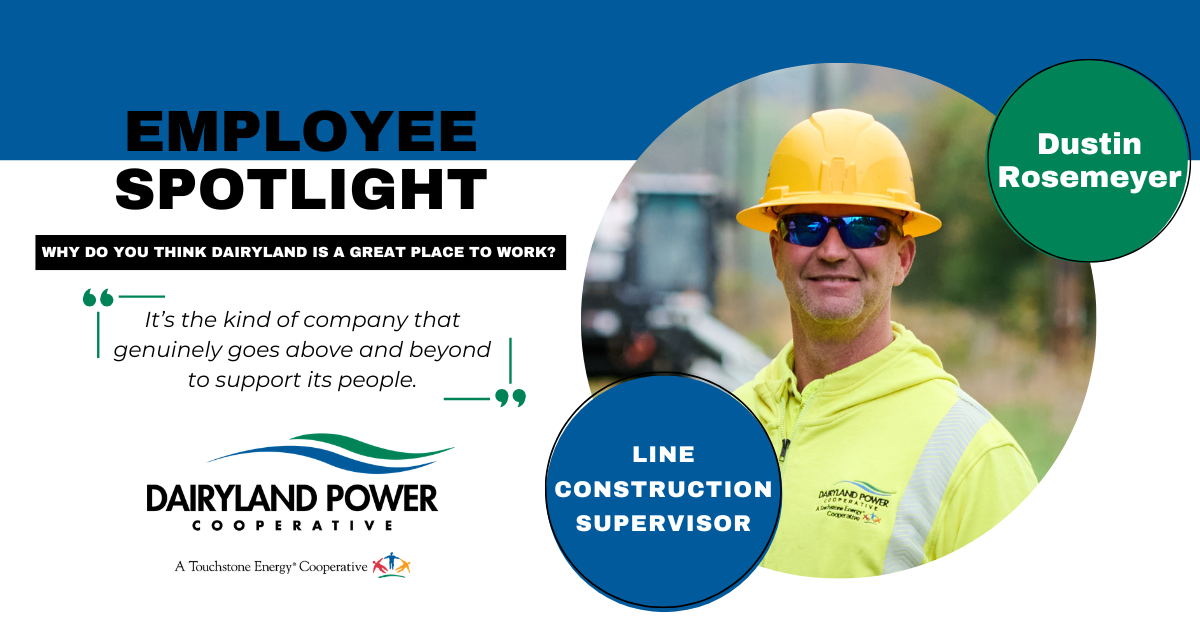 Employees are our greatest asset and as part of our People First initiative, we want to recognize the people behind the power. Our employees are a major factor in Dairyland being a Great Place to Work and a sustainable and reliable power provider. The employee spotlight series features an employee each month, shining a spotlight on their interests and what it’s like to be a part of the Dairyland team.