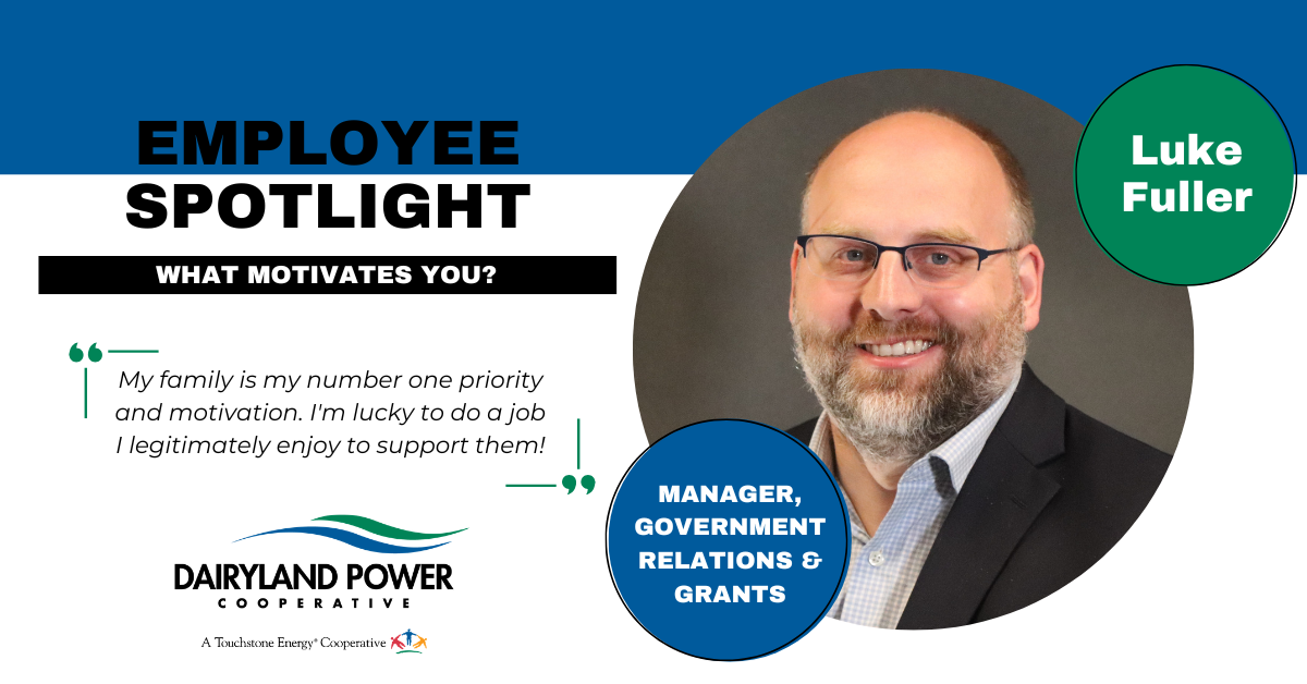 I spent the first 15 years of my career in and around the state government in Wisconsin. Right before starting at Dairyland, I worked for State Senator Julian Bradley who grew up in La Crosse and had a background in telecom (he spent most of his career at CenturyLink). I'd never worked on utility related policy issues until the fall of 2021 when I started working on the Senate Utilities Committee policy because Julian chaired the committee. I really enjoyed the issues and the people who worked on them (including former Dairylander Jen Shilling and our Wisconsin lobbyist Susie Schooff). Then during the 2023-24 session I got to know Dairyland better and meet some of the rest of the team as the committee worked on that session's Right of First Refusal (ROFR) bill. When there was an opening in late 2023, I was excited to apply for it.