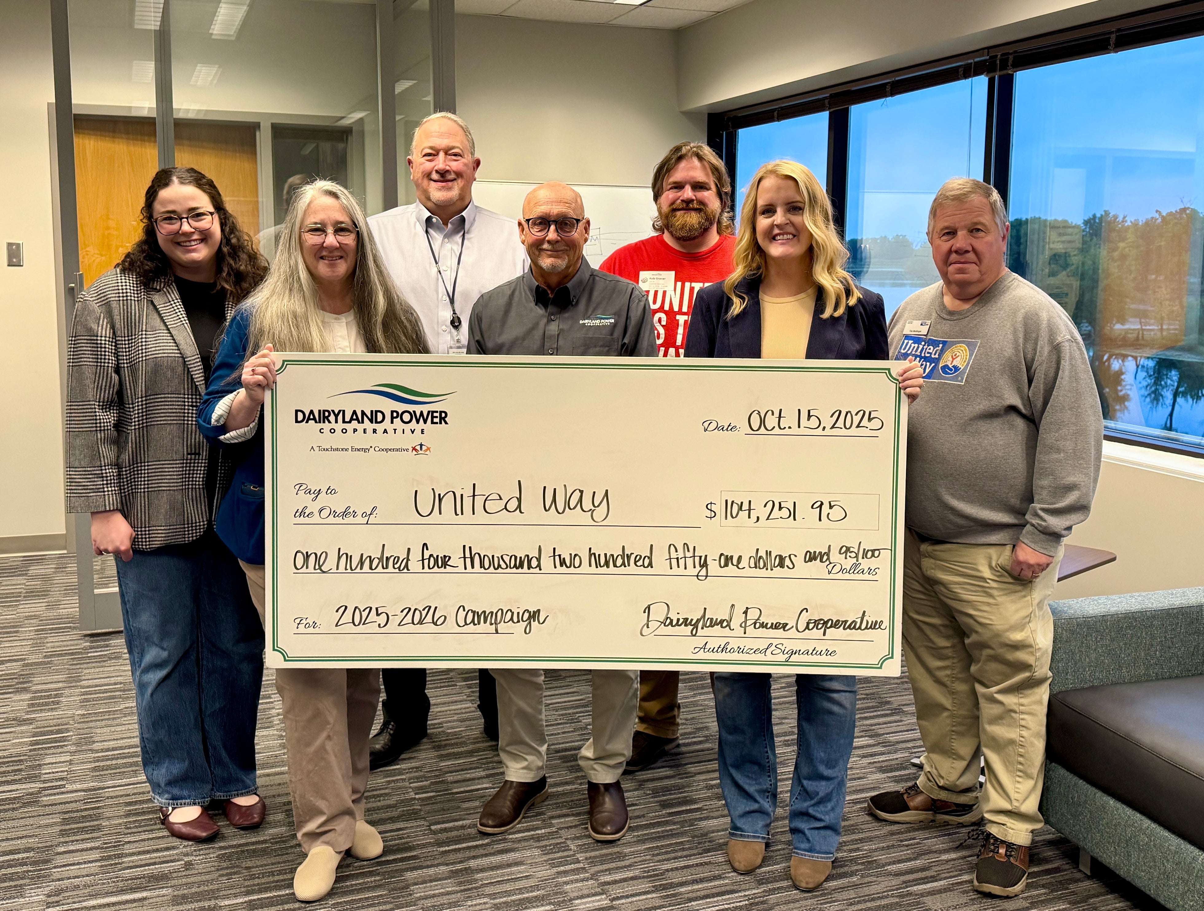 Dairyland employees and our board of directors are excited to showcase our 7th cooperative principle, Concern for Community, with a donation to the Great Rivers United Way and United Way Greater Chippewa Valley. Thanks to the amazing generosity of our team, we raised $104,251.95 to support our local communities!